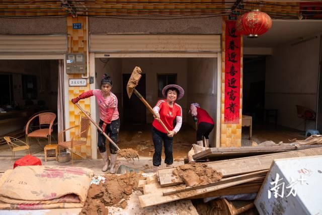 一个个小家门前,垃圾和沙石从家中被冲洗出来;一个个村庄路边,冲刷掉淤泥的桌椅曝晒阳光。梅州,正加快脚步重焕生机与活力。