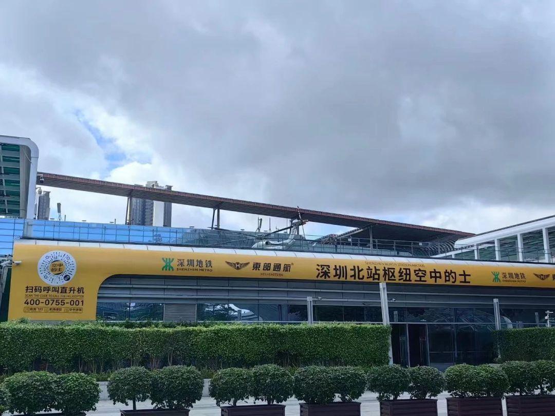 深圳北站枢纽空铁联运项目坐落于东广场C1单体处,现场设有314平方米的先进直升机坪,可向市民群众提供业内高水准空中的士包机运输服务。