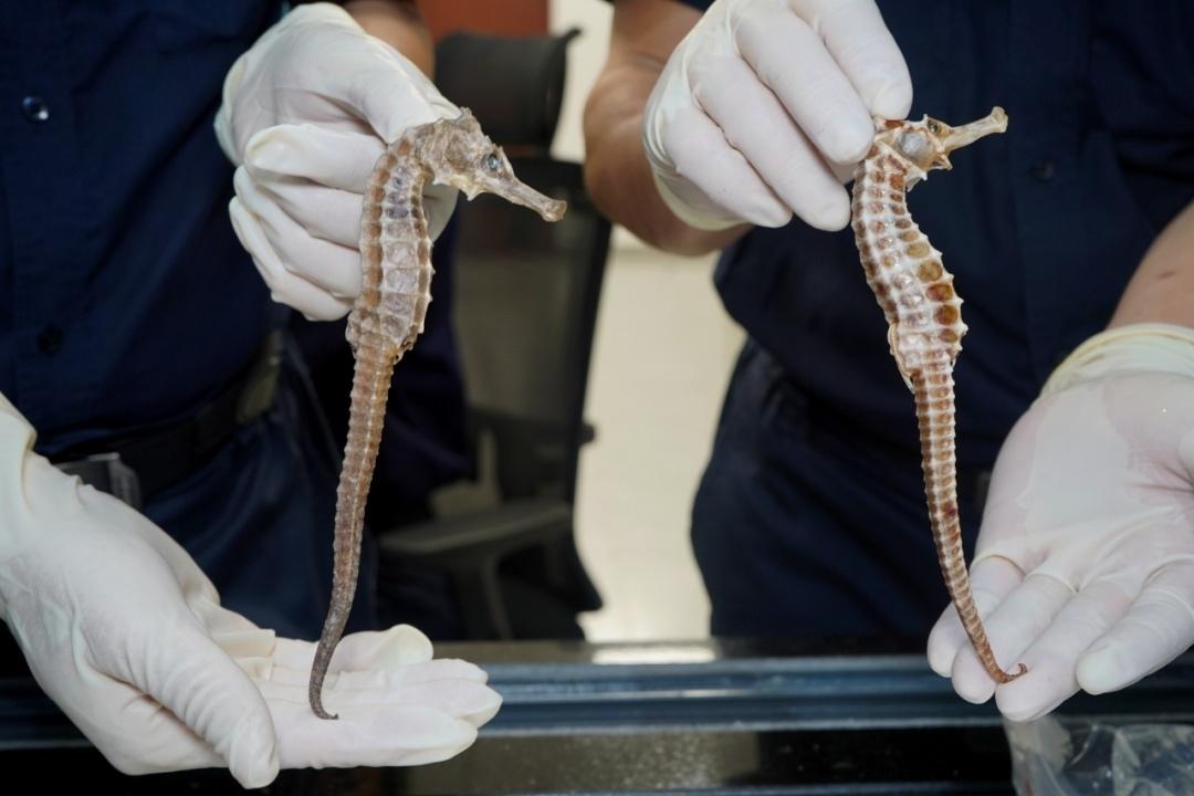 近日,华南动物物种环境损害司法鉴定中心对此前拱北海关所属湾仔海关查获的一批干海马制品出具鉴定报告。报告显示,该批干海马制品中22尾为辐鳍亚纲海龙鱼目海龙鱼科海马属克氏海马成体的干制品;其余197尾均为辐鳍亚纲海龙鱼目海龙鱼科海马属物种(非克氏海马)成体的干制品,上述海马均属于国家二级保护野生动物。