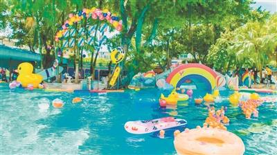 进入暑期之后,长隆水上乐园从早到晚人潮涌动,不少人专程前来体验70多项水上游乐设施,比如在“摇滚巨轮”可以体验360度漂移俯冲的快感,在“超级大喇叭”可以坐上特制的皮筏,在大喇叭中飞速旋转下滑。而到了夜晚,水上潮玩电音节也如约而至。为了提升气氛,乐园还专门邀请了众多明星与游客近距离互动,一起“蹦水迪”,可“周周有明星,天天开派对”。“广州的水上乐园体验不太一样,可以玩水、听明星演唱会,一举两得,而且每周都会有我们喜欢的明星,不会让人失望。”学生游客小王表示,最让他们学生游客惊喜的是在乐园里还能邂逅自己喜欢的游戏IP——《蛋仔派对》,走到哪里都能看到蛋仔主题装饰。