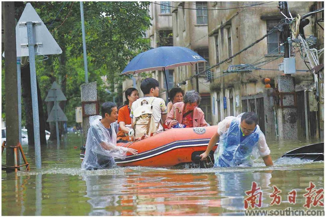 7月27日,潮州市湘桥区桥东街道对东湖社区受困群众进行救援。南方日报记者 苏仕日 摄