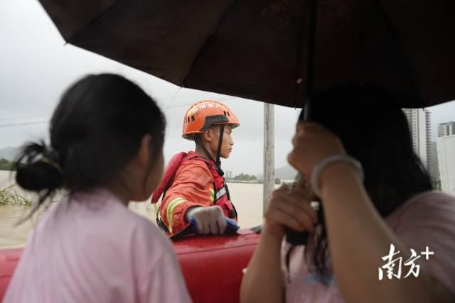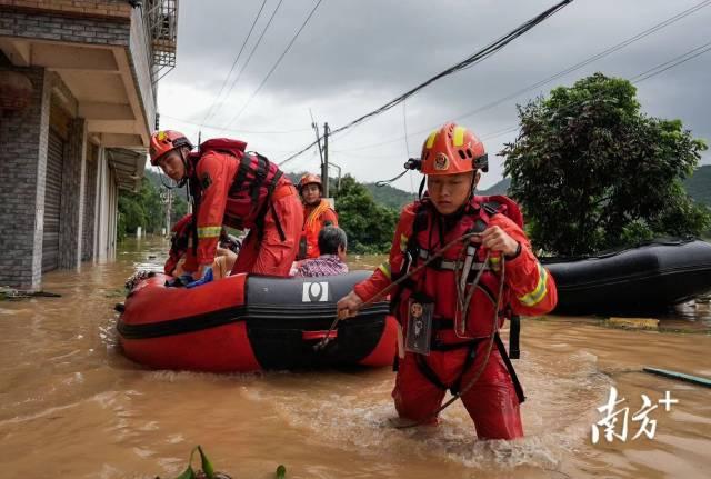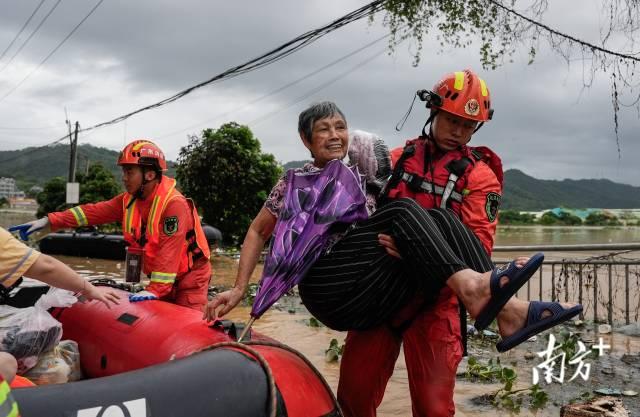 7月27日,受台风“格美”影响,潮州湘桥区意溪镇持续降雨,书厝楼村数百位村民受灾被困,潮州市第一时间紧急出动消防救援力量进入村庄,转移被积水围困的村民、投放食品和水等生活必需物资,包括年过七旬的老人、接近临盆的产妇、咿呀学语的幼儿在内的受困村民,被尽数转移到安全地带。