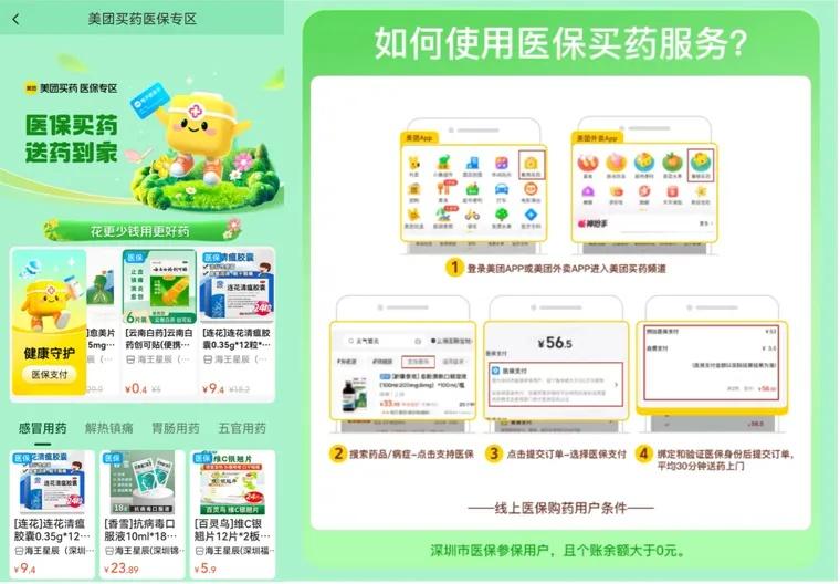 记者7月29日体验各大平台发现,美团平台已先在深圳试运行该项服务,并上线医保专区为广大市民带来更加便捷的购药体验。