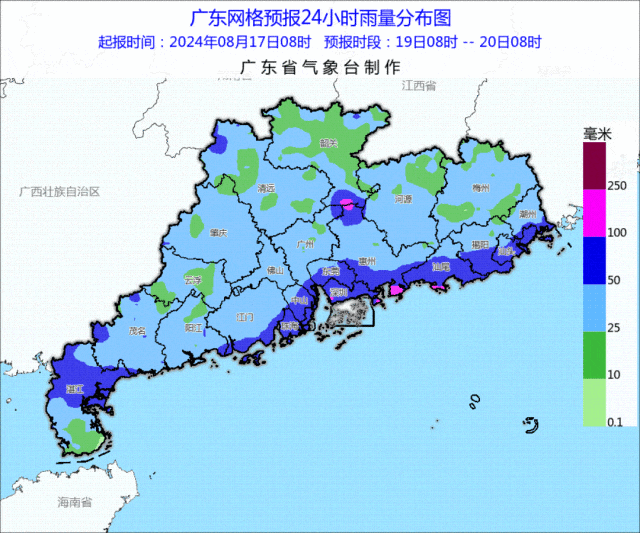 19日,粤西、珠江三角洲中南部、粤东、河源及梅州南部市县多云到阴天,有大雨到暴雨,局部大暴雨,其余市县多云间阴天,有中雨,局部暴雨。最高气温:中北部市县31~34℃,其余市县29~31℃。