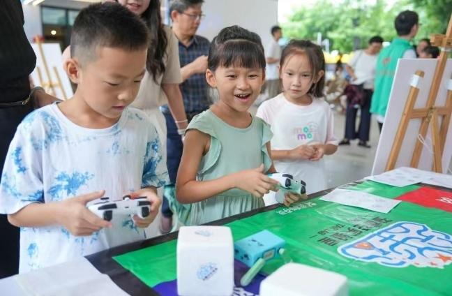 来到位于生产力大厦的创意工作坊,仿生机器人、AI创意绘图、探索微观世界等活动妙趣横生,不少小朋友纷纷拿着集章卡体验打卡。“我感觉平时都没有接触过这些东西,这一趟来得挺值的,这些新科技都很有意思。”参与活动的张同学表示。