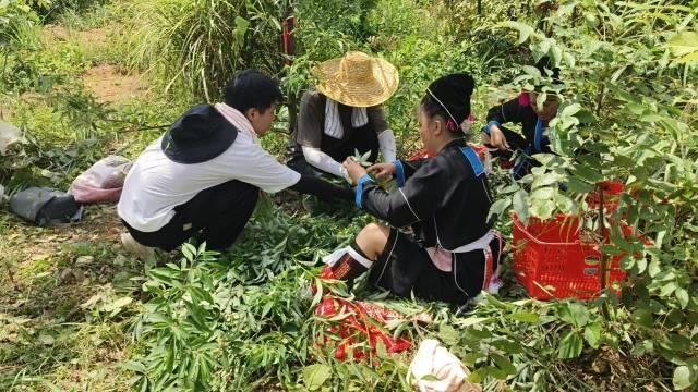 2024年8月8日,连南瑶族同胞在山上分选采摘下的山苍子,为分析连南山苍子成分提供原料。