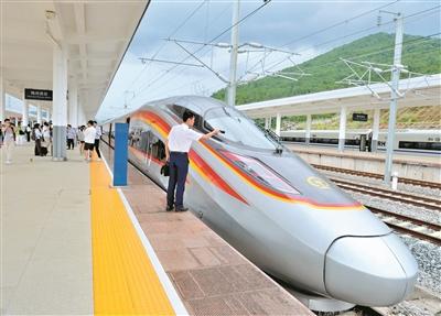 昨日,记者提前体验即将开通的梅龙高铁试运行。13:15分,C8856次列车从河源龙川西站开出,13:50分抵达梅州西站,全程耗时35分钟。记者从广铁集团获悉,8月10日以来,龙龙高铁梅龙段(梅龙高铁)已正式进入试运行阶段,预计9月具备开通运营条件。正式通车后,梅州到广州、深圳等粤港澳大湾区城市最短通行时间将缩短至1.5小时左右。