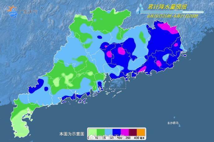 21日,粤北、珠江三角洲北部、珠江口两侧和粤东部分市县有大雨到暴雨,局部大暴雨,其余市县有中到大雨,局部暴雨。