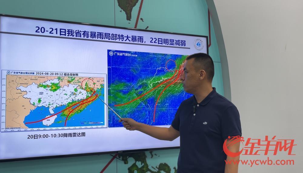 广东省气象台首席预报员杨国杰分析天气走势 通讯员供图