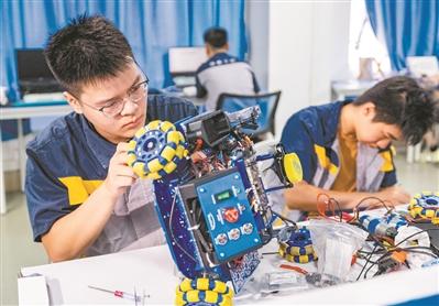 学生在组装移动机器人。广州日报全媒体记者廖雪明 摄