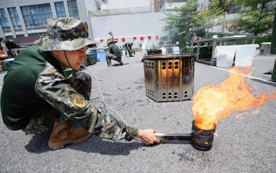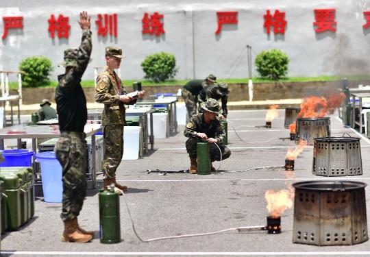 打开给养单元集成箱,提锅、支架、拿油罐、接油管……不到一分钟,一个个野战炊事灶台架设完毕,最快用时仅47秒。这是近日武警广东总队“十大炊事尖兵”大比武中的一幕。据悉,此次比武以野战给养单元为炊事基础,以战领建、以赛促训,全面检验和淬炼炊事保障队伍单兵综合能力。