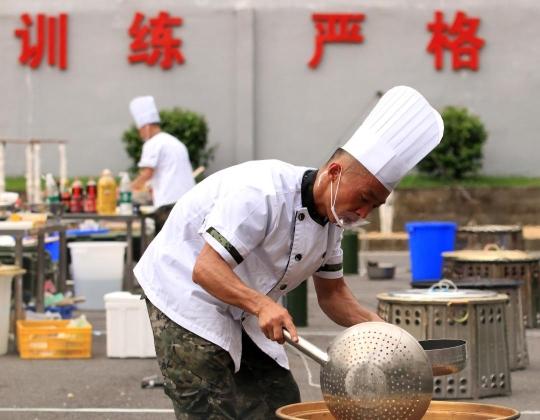 据了解,今年7月下旬,武警广东总队500多名炊事尖兵在广州开展了涵盖体能、技能、智能在内的炊事综合能力评估考核。本次参赛的20多名队员从中脱颖而出后,集中到深圳开展了近一个月的膳食搭配、菜系烹调等技能体系化培训,最终进入到此次“十大炊事尖兵”角逐。