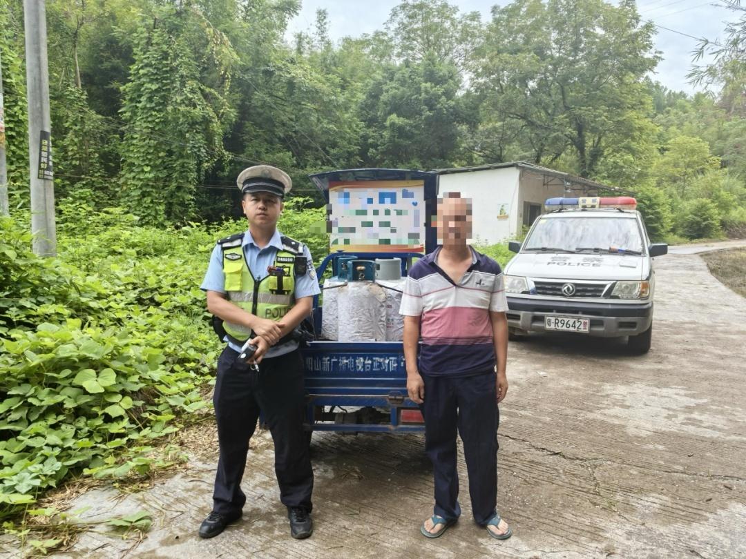 8月12日10时许,清远交警在巡逻时,发现一名男子驾驶一辆无号牌轻便三轮摩托车搭载燃气瓶经过,于是执勤交警上前将其拦截进行检查。