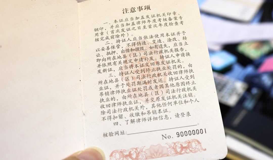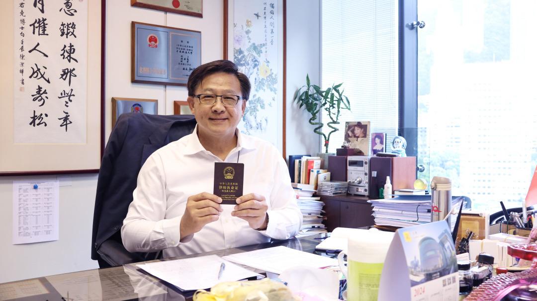 “001”号大湾区律师何君尧一直随身携带着大湾区律师执业证。