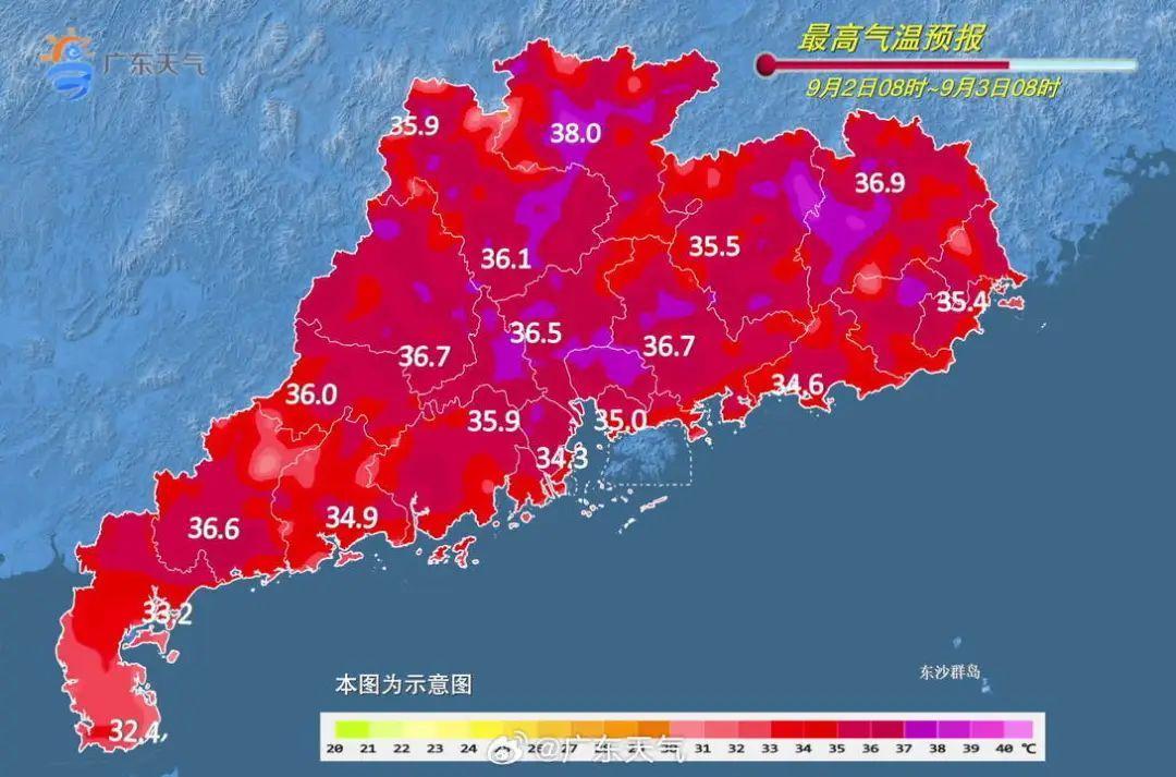 9月2日-3日,全省大部多云到晴,午后局部有(雷)阵雨。最高气温:沿海市县33℃~35℃,其余市县普遍介于35℃~38℃。