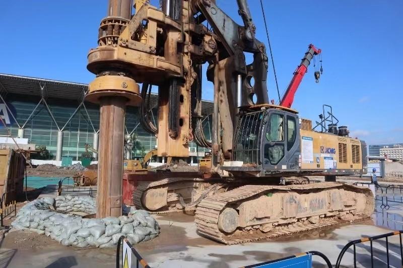 本次试桩共设3个试桩点,每个试桩点施工3种桩型各1根,试桩完成后,将为后续7068根桩基作业提供第一手施工参数资料。此次开钻的首根试桩设计桩长17米,桩径0.8米,采用旋挖钻成孔,C45水下混凝土灌注。