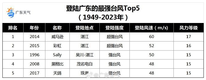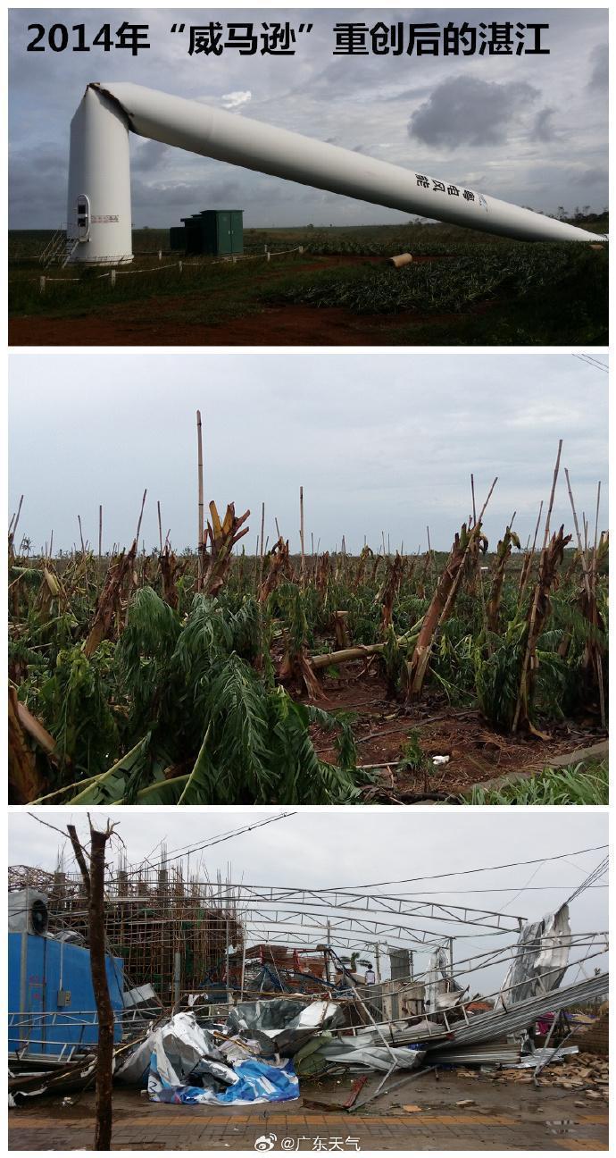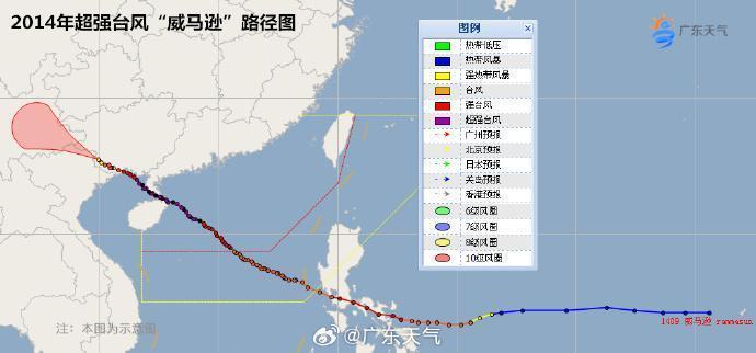 自1949年以来,在广东登陆的台风仅有2个是超强台风级别,即2014年的“威马逊”(历史第一强)和2015年的“彩虹”(历史第二强)。“摩羯”的强度和路径跟二者类似。
