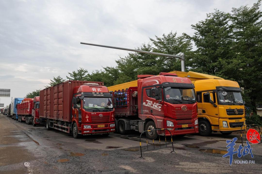 2024年9月5日,受台风“摩羯”影响,大货车临时停放在徐闻县进港公路上。羊城晚报记者 钟振彬 摄