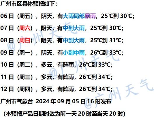 9月6日至9月7日,粤西有暴雨到大暴雨,局部特大暴雨,云浮和珠江三角洲中南部市县有大雨到暴雨,局部大暴雨,其余市县多云间阴天有(雷)阵雨,局部暴雨;部分市县伴有局地 8~10级短时雷雨大风、龙卷等强对流天气。