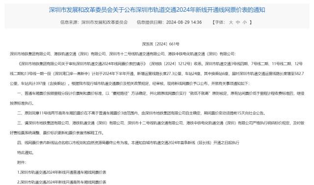 近日,深圳市发改委官网公布2024年地铁新线开通线网票价表,多条地铁线路将于2024年下半年开通。