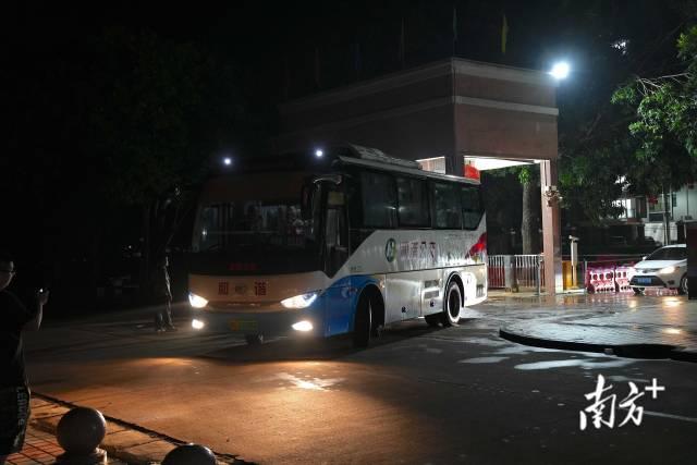 21:30,在徐闻实验中学陆陆续续迎来了一车车的大巴和物资运输车辆,徐闻应急管理局的工作人员引导群众将物资不断搬运到学校大教室,滞留人员带着行李在中学教室中安置下来。据了解,徐闻实验中学作为徐闻首个开放的安置点,人员满员后将进一步放开梅溪实验中学和体育中心的安置点。