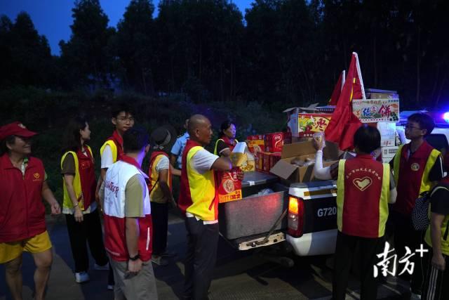 与此同时,共青团徐闻县委组织70余名志愿者,与公安干警和交警队伍联合开展餐食和物资派送,鲜红的旗帜和背心缓缓在货车之间穿梭,许多货车司机纷纷下车领取热腾腾的饭菜,脸上露出了笑意。“政府给我们派送物资来了,你要不要也过来领取一下?”司机们在电话中口耳相传,道路上渐渐热闹了起来。