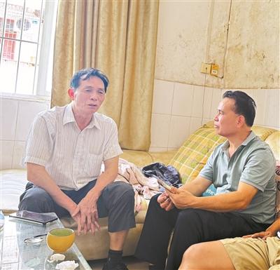 吴振贵(左)向记者讲述自己的人生故事。(罗树品摄)