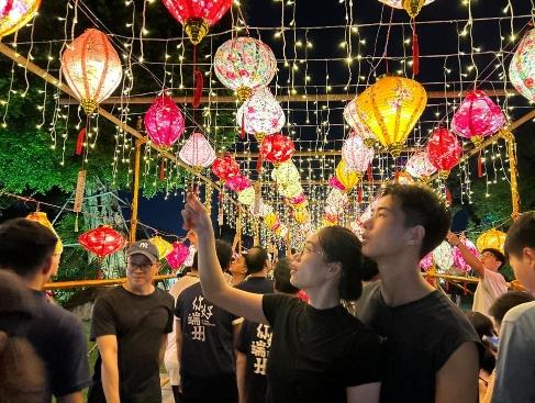 现场的群众热情高涨。他们扶老携幼,漫步在灯的海洋中。来自广州的游客李先生说道:“我一直听闻端州的文化底蕴深厚,这次借着中秋灯会的机会前来,真的大开眼界。不仅花灯好看,而且这里设置的猜灯谜、诗朗诵等互动摊位,非常有文化内涵和品位。”