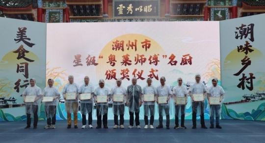 现场还为11名2023年三星级“粤菜师傅”名厨颁发证书,并为潮州菜行业专家工作站专家、潮州市饶平县厨师协会理事会成员颁发聘书,以表彰他们在传承与创新潮州美食文化中的突出贡献。