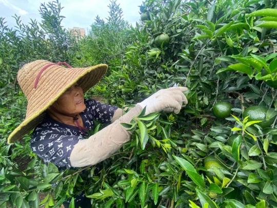 又是新会柑采摘上市时!本月22日,在江门市新会海江百盈柑场,当地的果农们正忙着摘柑、剥皮、晒皮,这标志着首批新会“微红”柑上市,来自佛山、东莞等地的采购商、游客纷纷前来采摘。