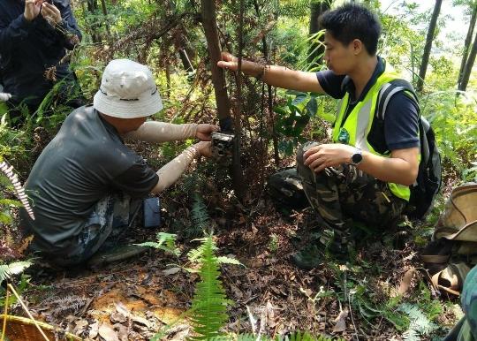 科研人员在开展中华穿山甲洞穴样线专项调查