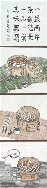 “我们看到了许多优秀作品,它们以独特的视角展现了传统文化、非遗技艺的魅力,同时也体现了学生对传统文化的深刻理解和创新表达。”张思燕以参赛作品《岭南早茶》为例介绍,“画面用朴素的绘画语言,描绘了广州早茶烧卖、凤爪等大众喜爱的传统美食。小作者真挚地表达出自己对广府文化的热爱。我们希望新生一代能够从传统文化中汲取智慧和灵感,用创意和热情将传统文化发扬光大。”