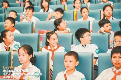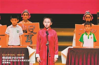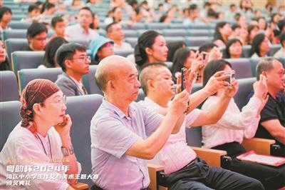 昨日下午,“英雄花开英雄城·继往开来”粤韵杯2024年湾区中小学生作文与美术主题大赛(以下简称“粤韵杯”)颁奖典礼在广东实验中学(白云校区)举行。作文组、美术组部分获奖选手、指导老师及优秀组织学校代表近千人参加,共同见证荣誉时刻。此次大赛自今年3月在广州赛区启动(5月“粤韵湾区杯”在港澳赛区启动)以来,于8月迎来决赛,9月完成评审。大赛中,粤港澳三地学生用灵动的文字、细腻的笔触、独特的视角表达了他们对岭南优秀传统文化、英雄精神、廉洁文化等主题的感悟和理解。