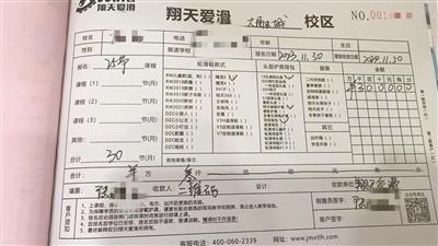 事发于去年11月30日,林女士为3岁的女儿在“翔天爱滑大融城店”报名轮滑课程,协议签订金额为3000元,总课时为30节,服务时间为一年。但是,交费仅1个月时间,课程还没来得及上,林女士就被销售告知:培训机构门店关闭,搬迁至位于美的广场的新址。