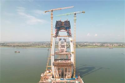 大洋网讯 日前,清花高速北江特大桥5号索塔上横梁全部浇筑完成,标志着北江特大桥首个主塔顺利合龙,进入最后的塔冠“冲刺”阶段,“凤凰展翅”即将呈现。