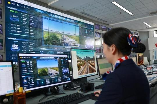 监控员通过无人机空地交通一体化系统巡查路面