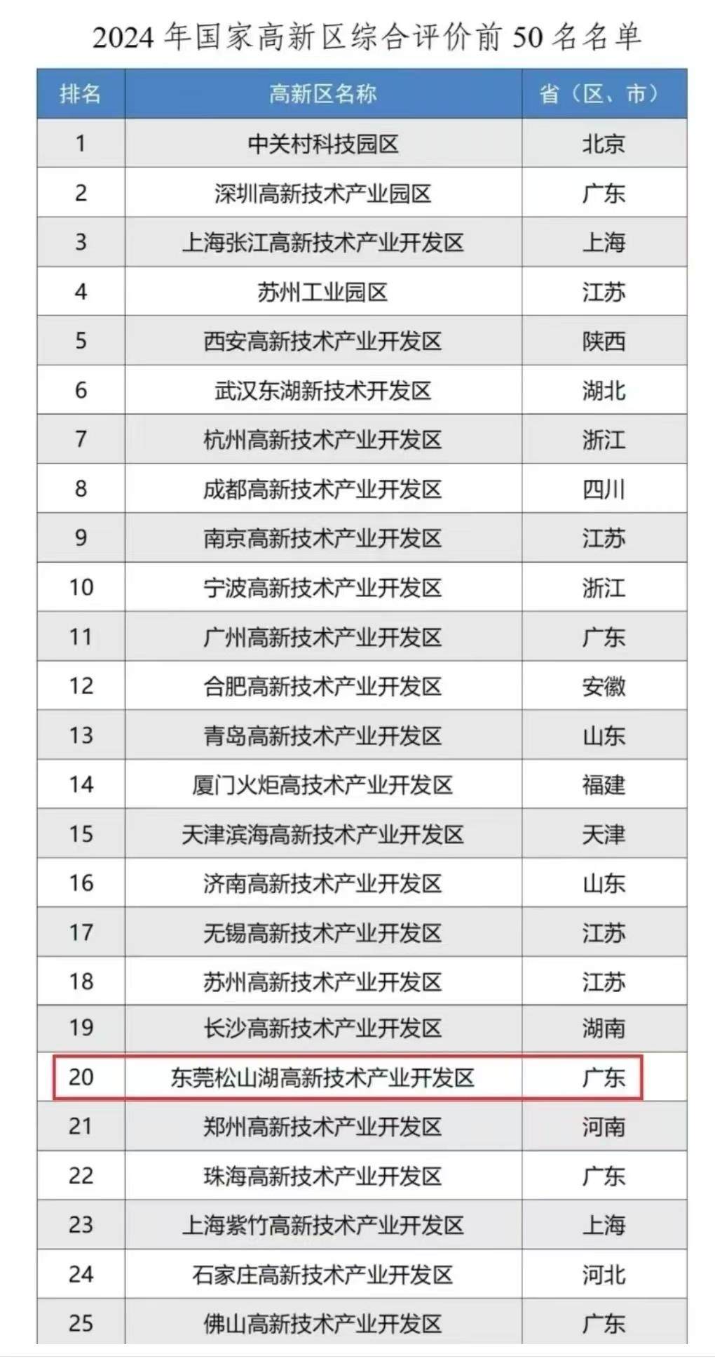 短短20来年时间,松山湖高新区在成长的道路上一路狂飙与飞跃,成为东莞实力的生动体现与硬核名片!工业和信息化部近日完成了2024年178家国家高新区综合评价工作,结果显示东莞松山湖高新区综合评价位居全国第20位,这也是松山湖高新区首次跻身前20强,其中高技术产业营业收入、企业研发经费投入强度、人均技术合同成交额等重要单项评价,分别位居全国第12位、第19位、第20位。