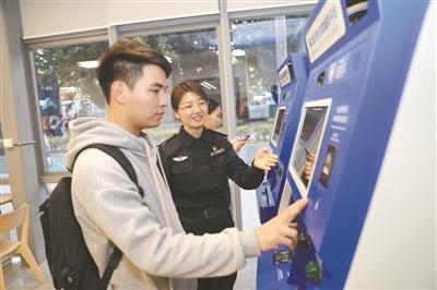 深圳市八卦岭派出所民警指引群众使用自助办证机快速办理业务。