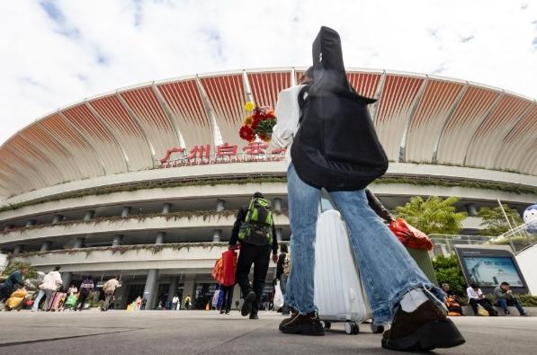 广州南站昨日开行列车455.5对,预计到发旅客46.2万人次,其中发送27.4万人次,到达18.8万人次。