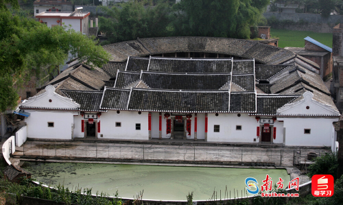 靠山随岭的客家围龙屋。