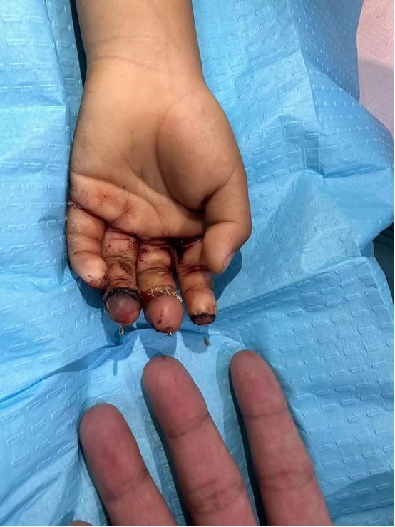 近日,清远市人民医院创伤中心、骨科三区接收1例4岁的小朋友,食、中、环3个手指末节离断,经3个多小时的紧急手术,成功保住患儿全部手指。