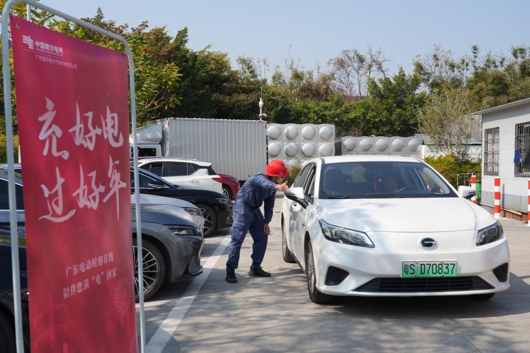 为满足新能源车主充电需求,南方电网广东电网公司提前布局,安排工作人员开展24小时应急值守,及时调配补电车为充电高峰期提供应急补能服务,确保车主在返工返程路上有充足的电能保障。