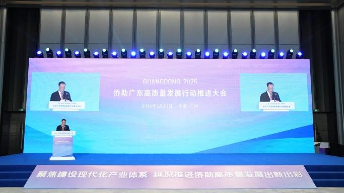 侨助广东高质量发展的号角再次吹响。2月13日下午,由广东省侨办主办的“2025侨助广东高质量发展行动推进大会”在广州举行。大会以“聚焦建设现代化产业体系,纵深推进侨助高质量发展出新出彩”为主题,展示了侨助广东高质量发展的“三个十大”项目成果,并正式成立“侨商‘粤贸全球’联盟”。周泽荣、叶紫莹、古润金、黄楚基等知名侨界代表作大会主题发言,姚宾在大会上宣读侨助“粤贸全球”行动倡议书,为广东高质量发展再注“侨”动力,贡献“侨”智慧。