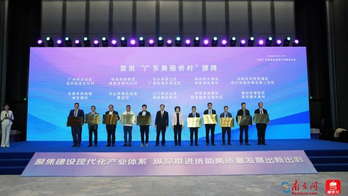 大会最后,首批“广东美丽侨村”上台接受颁牌,广州市白云区龙归街道北村村、珠海市高新区唐家湾镇鸡山村等10个侨村获此殊荣。此次获评的汕头市濠江区广澳街道东湖社区是有着800多年历史的著名侨乡。该社区党委书记、办事处主任林荣任告诉记者,社区在海外有13000余名侨胞,近年来,家乡依托规划,以一批侨资侨力重点打造了华侨记忆广场、海员俱乐部、华侨博物馆、绿美公园、景观水街等项目。东湖社区以“侨、农、文、旅”为抓手,每年邀请“侨二代”“侨三代”回乡交流,共同探讨家乡发展,发展教育园区,同时结合小型农业休闲游和汕头美食风光,吸引游客,助推“百千万工程”的实施。