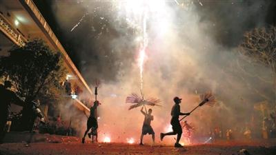 从农历正月十三至元宵节,每当夜幕降临、华灯初上,韶关市始兴县罗坝镇的圩镇宛如被点燃的欢乐海洋。火龙游经之处,空气被铜锣与鼓点撕裂,青年们黝黑的脊背反射着烟火,电筒作眸的龙首在烟雾中忽隐忽现。“这是活着的历史!”一名来自广州的游客将小儿举过肩头,孩童的瞳仁里跃动着两簇好奇的火焰。
