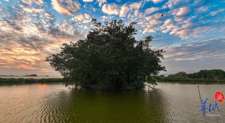 在大埠村三一队的内河涌心,有一座椭圆小岛,四面环水,宛如水上青螺。其周滩涂错落,鱼塘棋布,鱼虾戏游,浮游生物聚汇,恰似自然摆下的珍馐盛宴,引得无数鹭鸟翩跹而至。晨曦初露,鹭鸟欢鸣,于岛上空盘旋嬉戏;日暮西沉,百鸟归巢,羽翼翩跹,勾勒出壮观的剪影,引得游人纷至沓来,沉醉于这鸟的天堂,流连忘返。