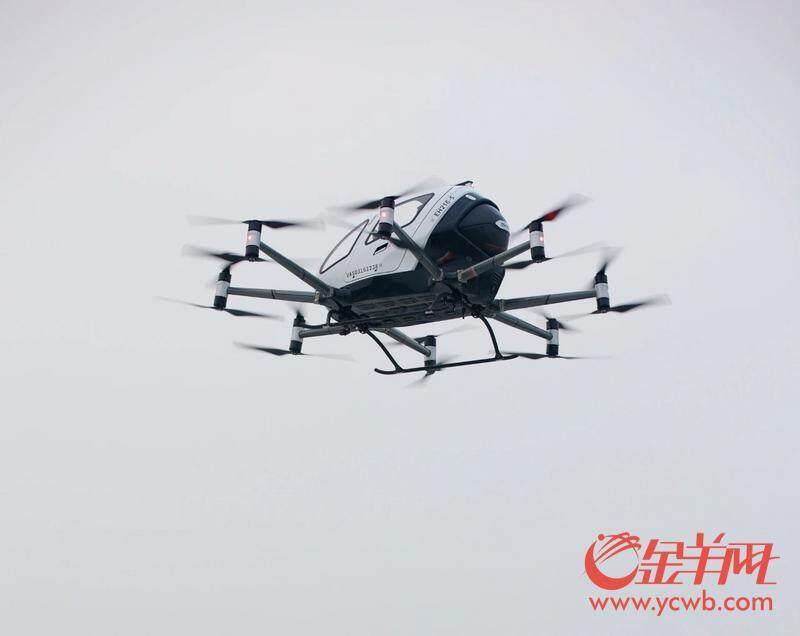 中国民航局受理亿航智能无人驾驶载人航空器运营合格证申请。图为EH216-S无人驾驶载人航空器