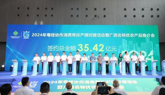 另一方面是搭建平台,畅通产销对接渠道,打通农产品上行环节。2024年,粤桂举办了众多农产品产销对接活动,发挥粤港澳大湾区的市场优势,让广西的优质农产品充分满足湾区民众的味蕾。如在2024年粤桂协作消费帮扶产销对接活动暨广西名特优农产品推介会上,落实涉农签约及农产品采购项目70个,签约金额达35.42亿元。