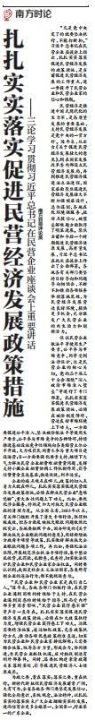 “凡是党中央定了的就要坚决执行,不能打折扣。”习近平总书记在民营企业座谈会上指出,扎扎实实落实促进民营经济发展的政策措施,是当前促进民营经济发展的工作重点,进一步提升了民营企业和民营企业家的信心和预期。