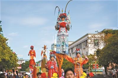 惠城镇春节文艺游演活动中,《景屏迎祥》展现借古颂今的传统技艺。